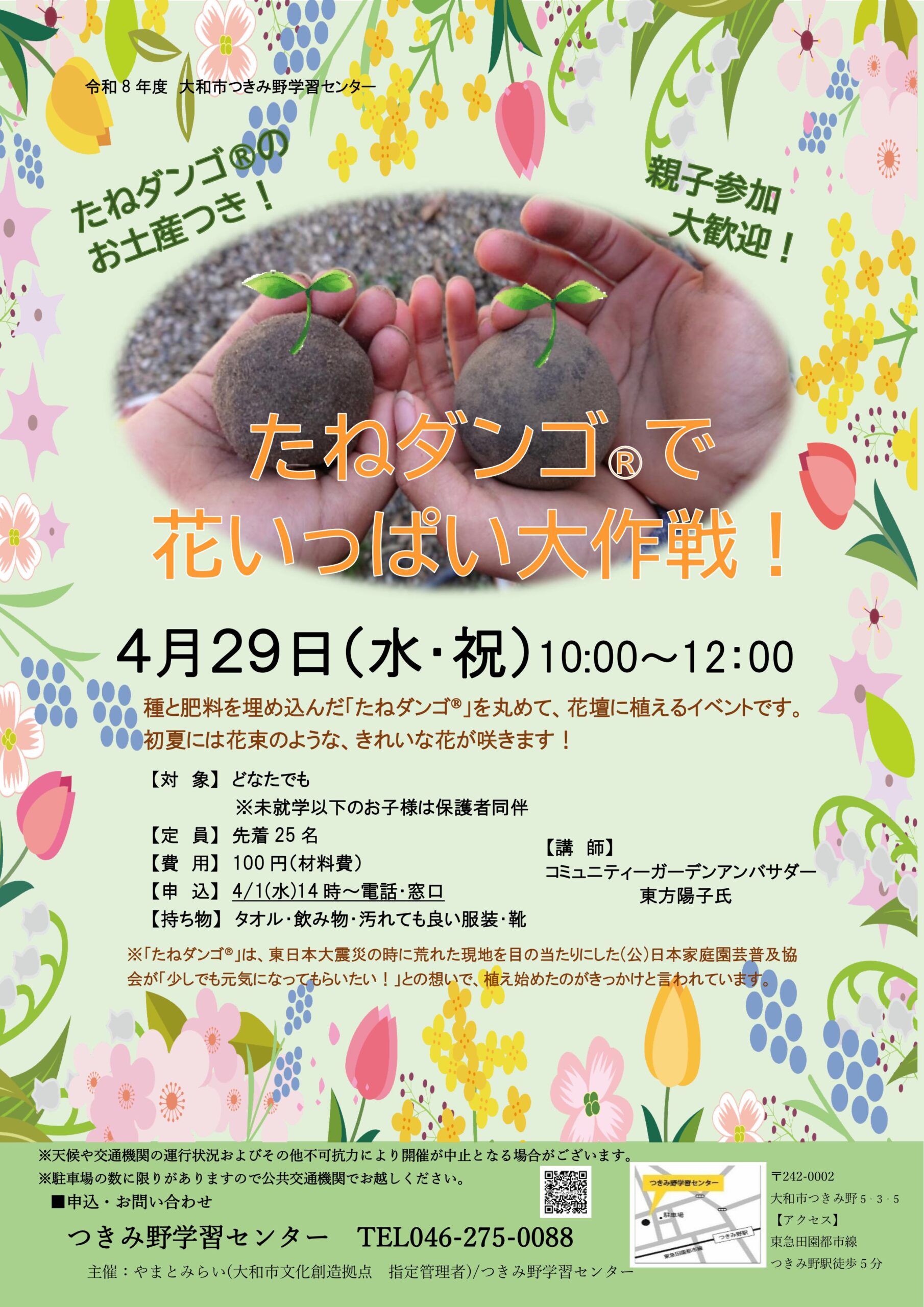 YAMATOMIRAI > つきみ野学習センター > イベント情報 > たねダンゴ®で花いっぱい大作戦!