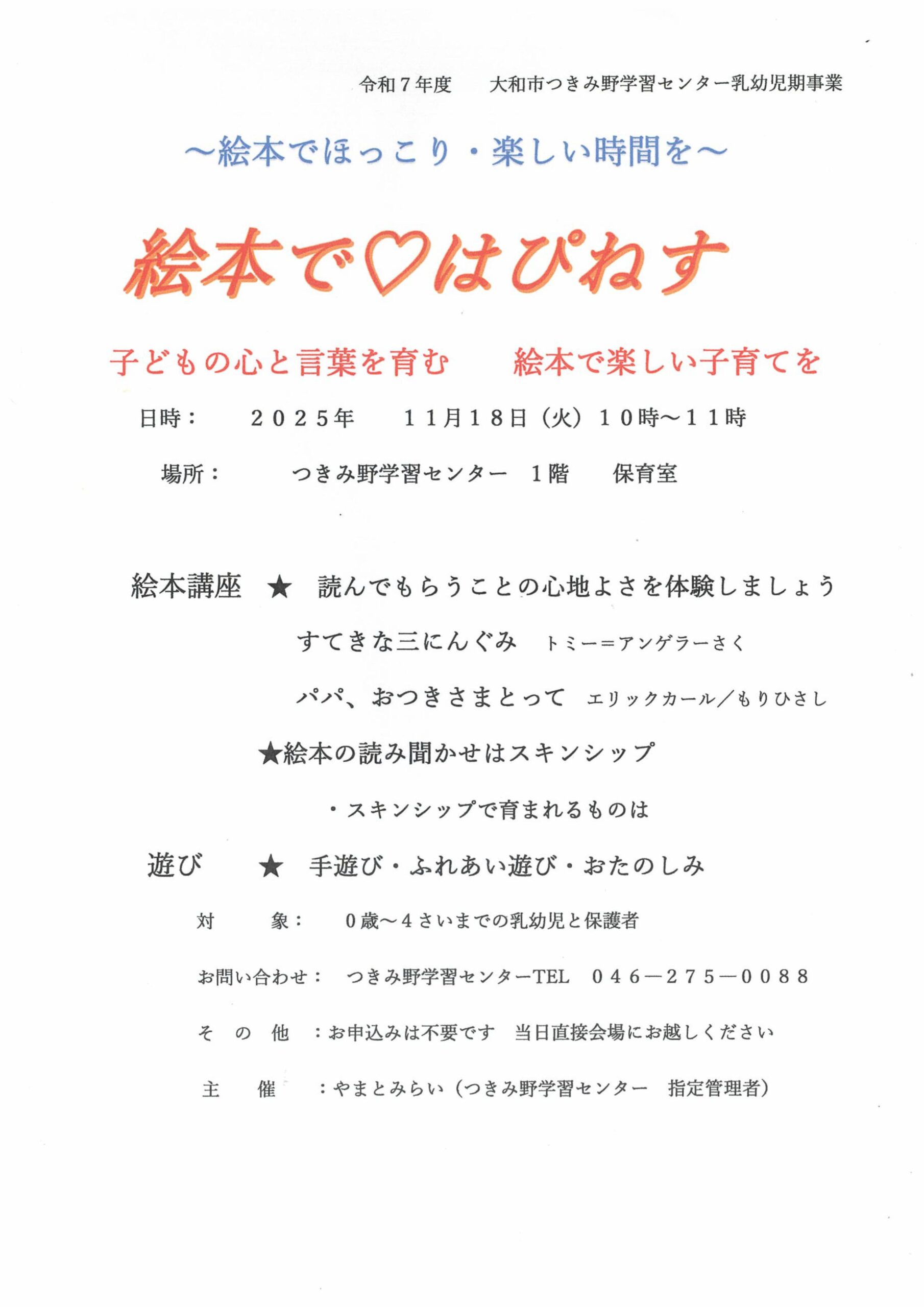YAMATOMIRAI > つきみ野学習センター > イベント情報 > 絵本で♡はぴねす
