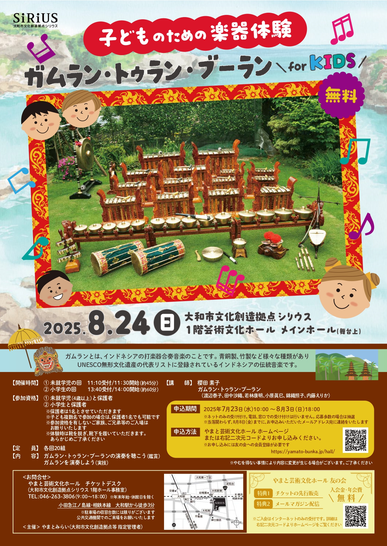 YAMATOMIRAI > 文化創造拠点シリウス > イベント情報 > 子どものための楽器体験 ガムラン・トゥラン・ブーラン for KIDS
