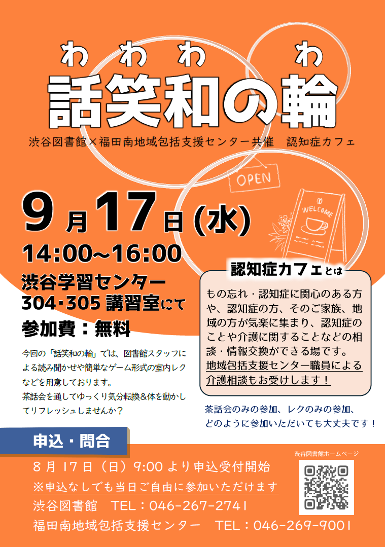 YAMATOMIRAI > 渋谷図書館 > イベント情報 > おれんじカフェ「話笑和の輪(わわわのわ)」
