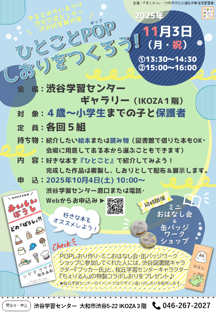 YAMATOMIRAI > 渋谷図書館 > イベント情報 > 【やまとみらいまつり】ひとことPOPしおりをつくろう!