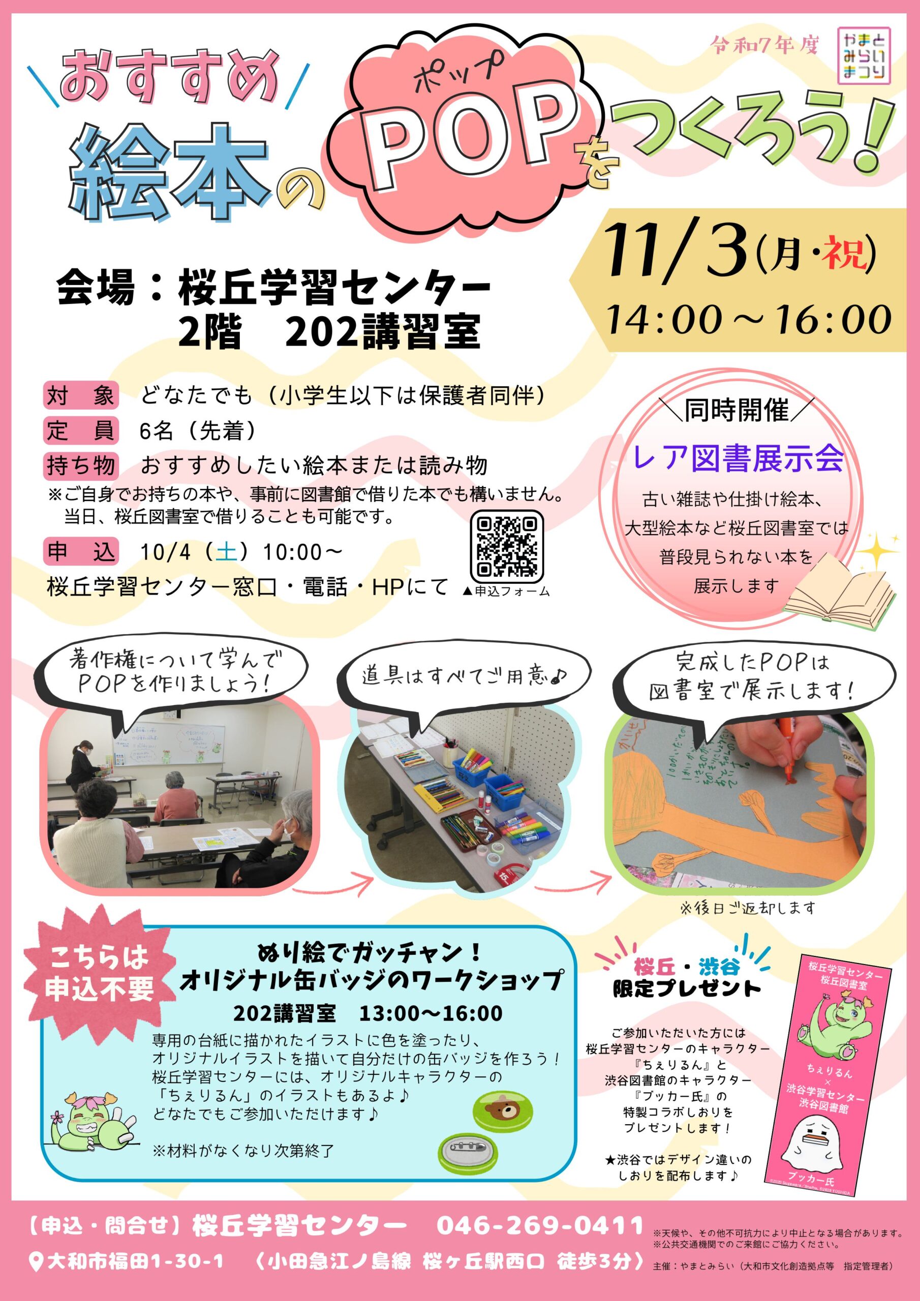 ワークショップ開催後、POPを桜丘図書室内に展示させていただきます。