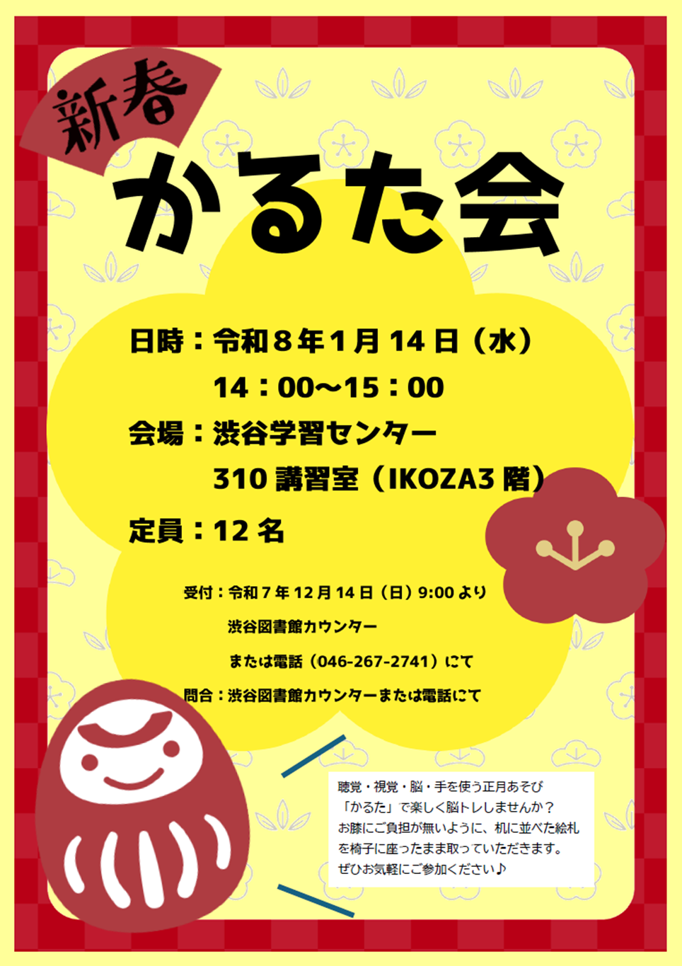 YAMATOMIRAI > 渋谷図書館 > イベント情報 > 新春かるた会