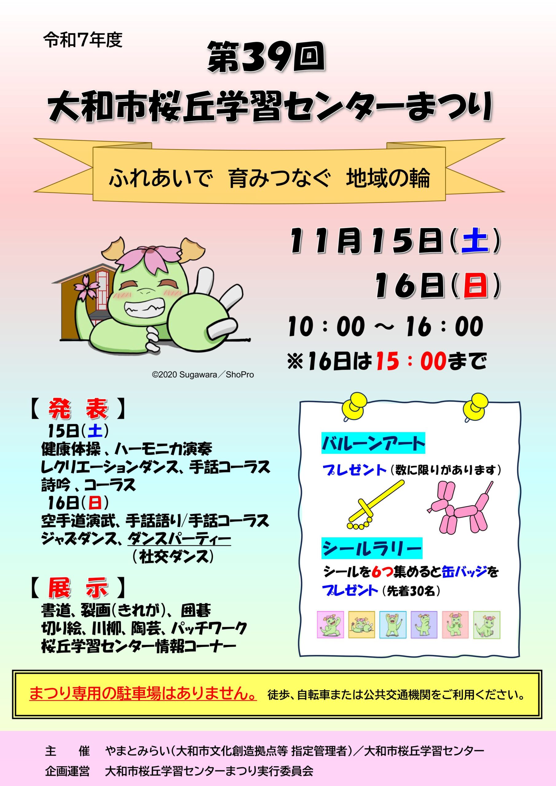 YAMATOMIRAI > 桜丘学習センター > イベント情報 > 第39回大和市桜丘学習センターまつり