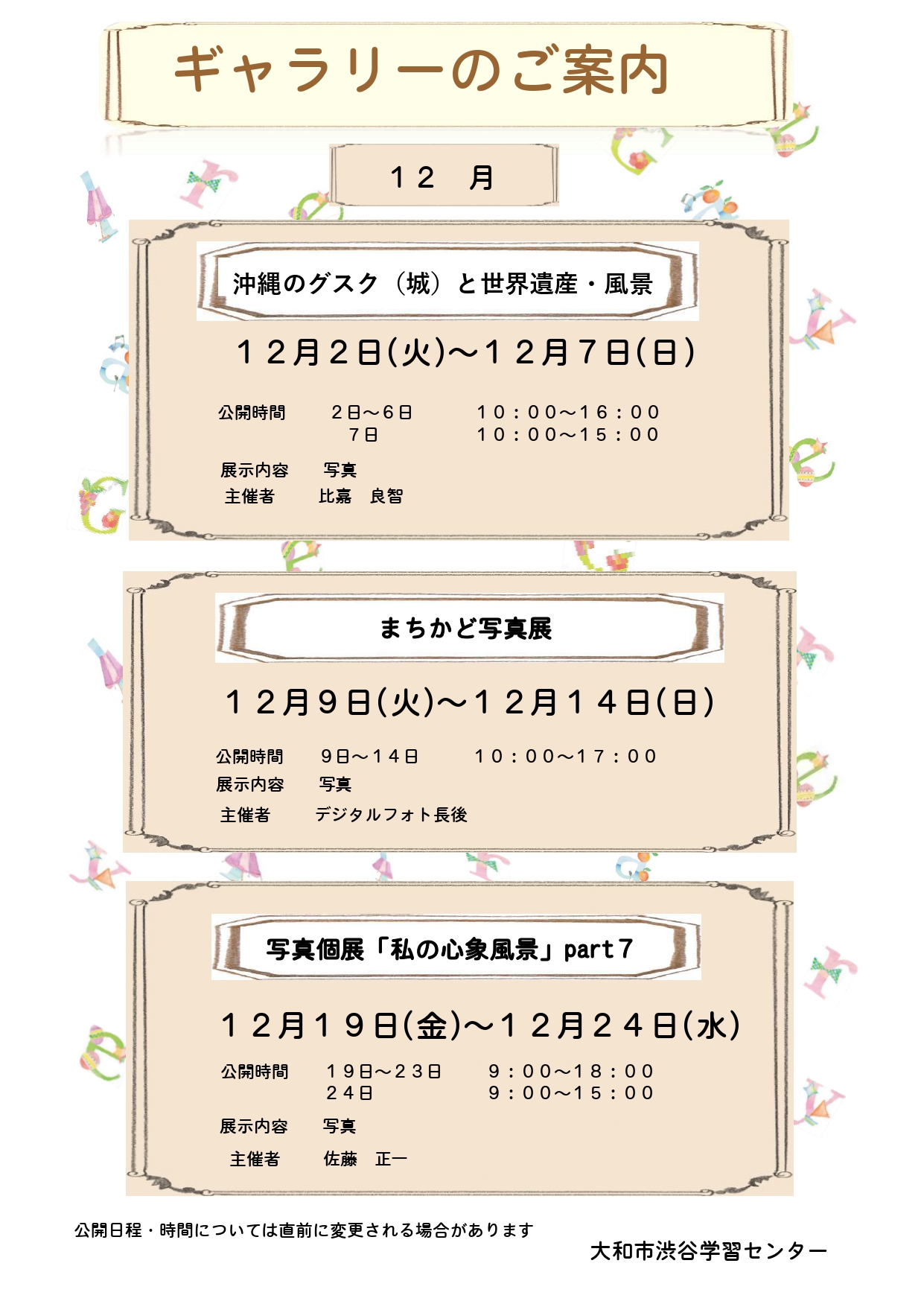 YAMATOMIRAI > 渋谷学習センター > イベント情報 > 11月のギャラリーのご案内