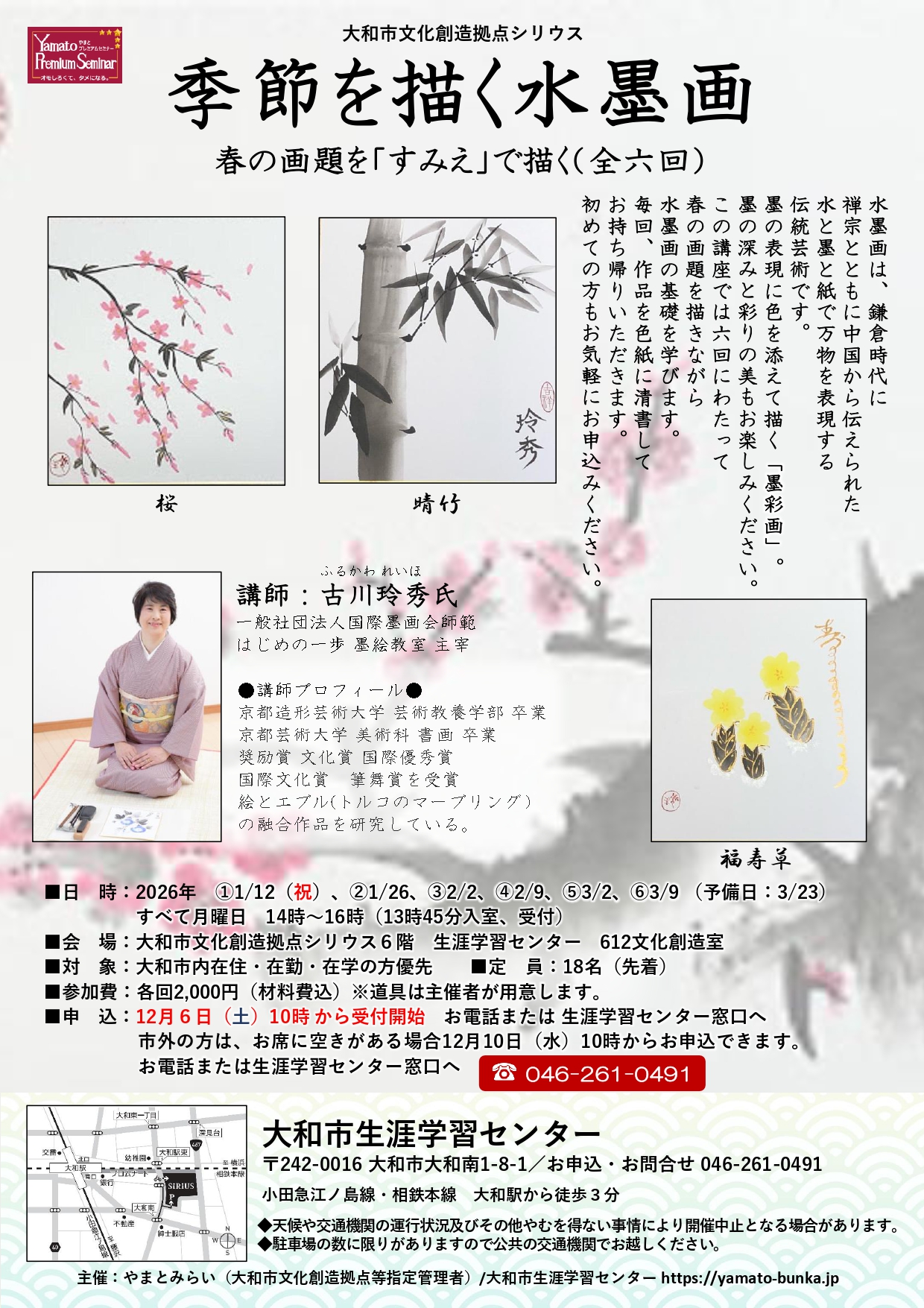 YAMATOMIRAI > 文化創造拠点シリウス > イベント情報 > 季節を描く水墨画 春の画題を「すみえ」で描く(全六回)