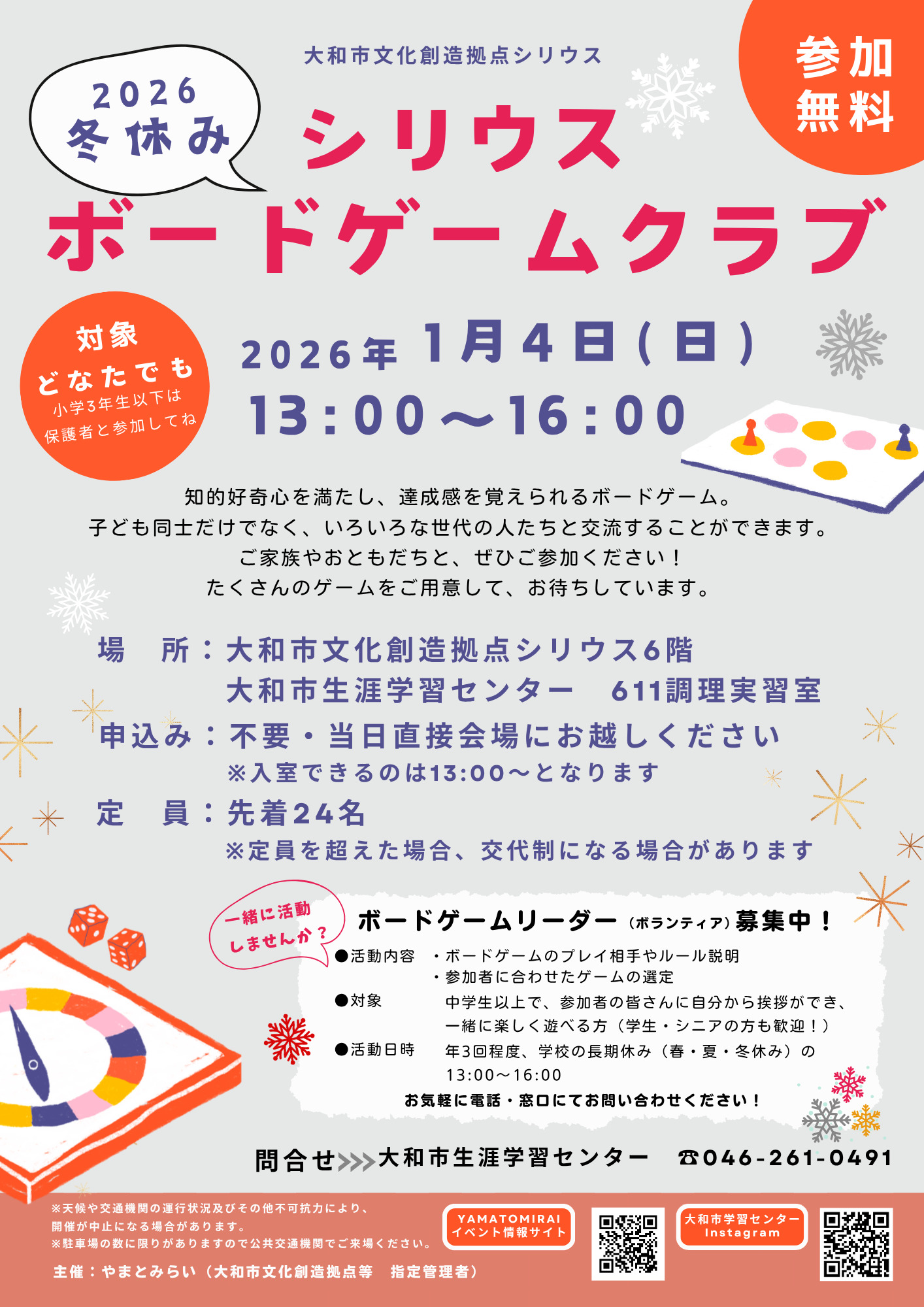 YAMATOMIRAI > 文化創造拠点シリウス > イベント情報 > 2026冬休みシリウスボードゲームクラブ