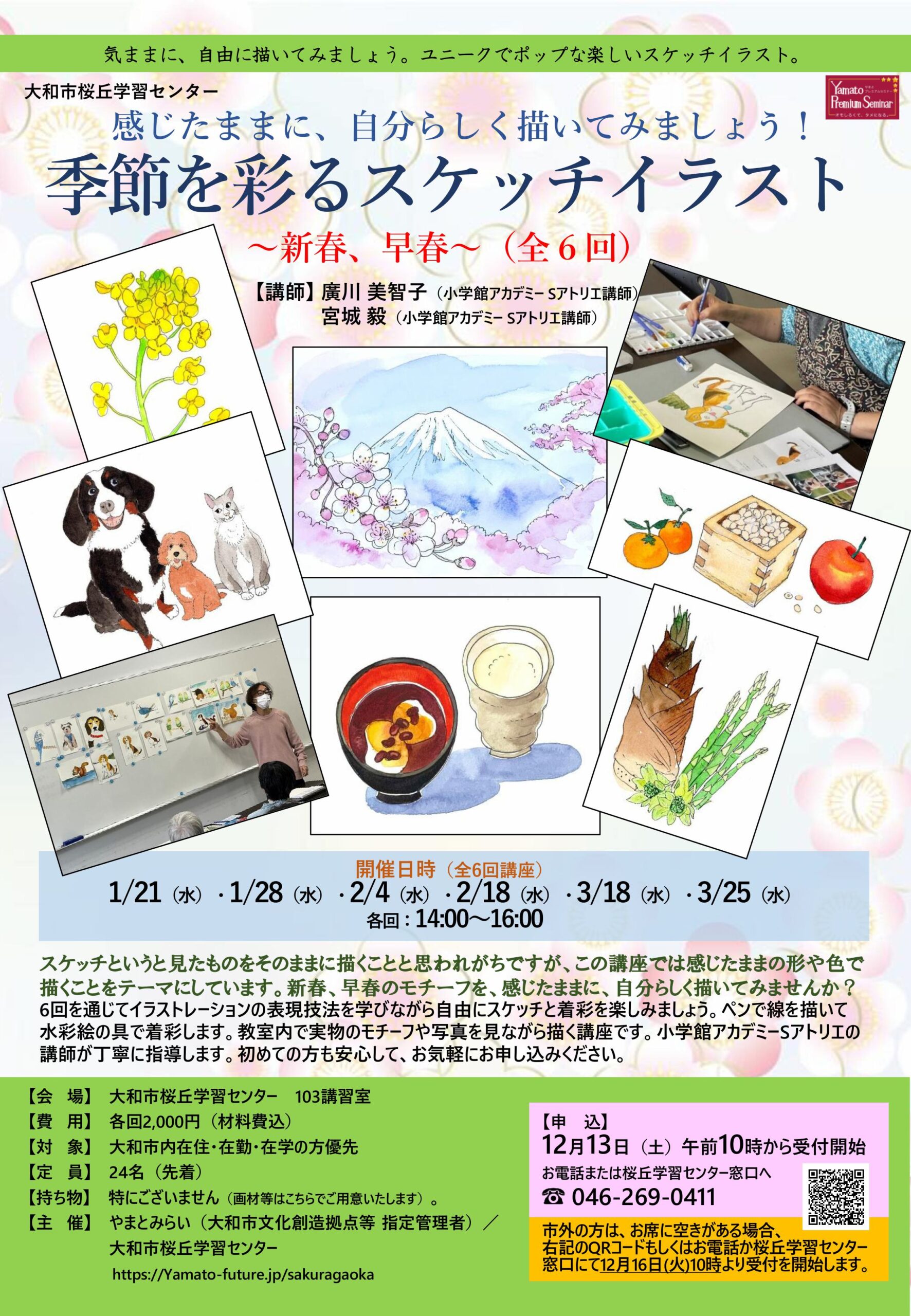 YAMATOMIRAI > 桜丘学習センター > イベント情報 > 感じたままに、自分らしく描いてみましょう!季節を彩るスケッチイラスト~新春、早春~(全6回)