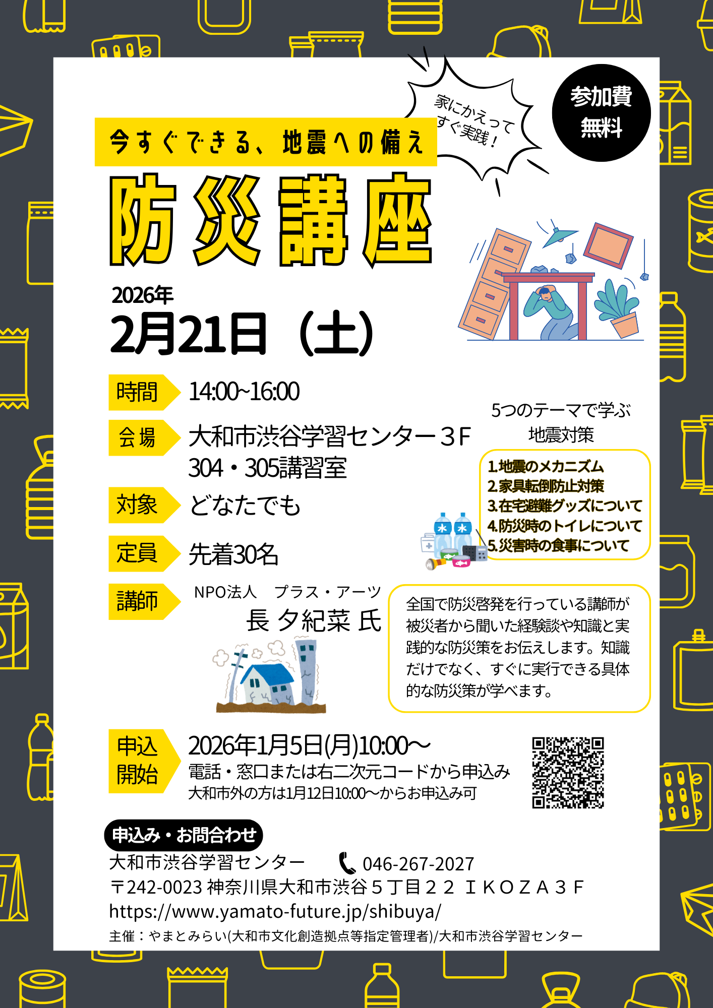 YAMATOMIRAI > 渋谷学習センター > イベント情報 > 防災講座~今すぐできる地震への備え