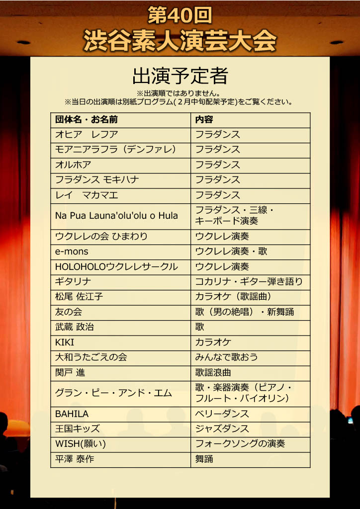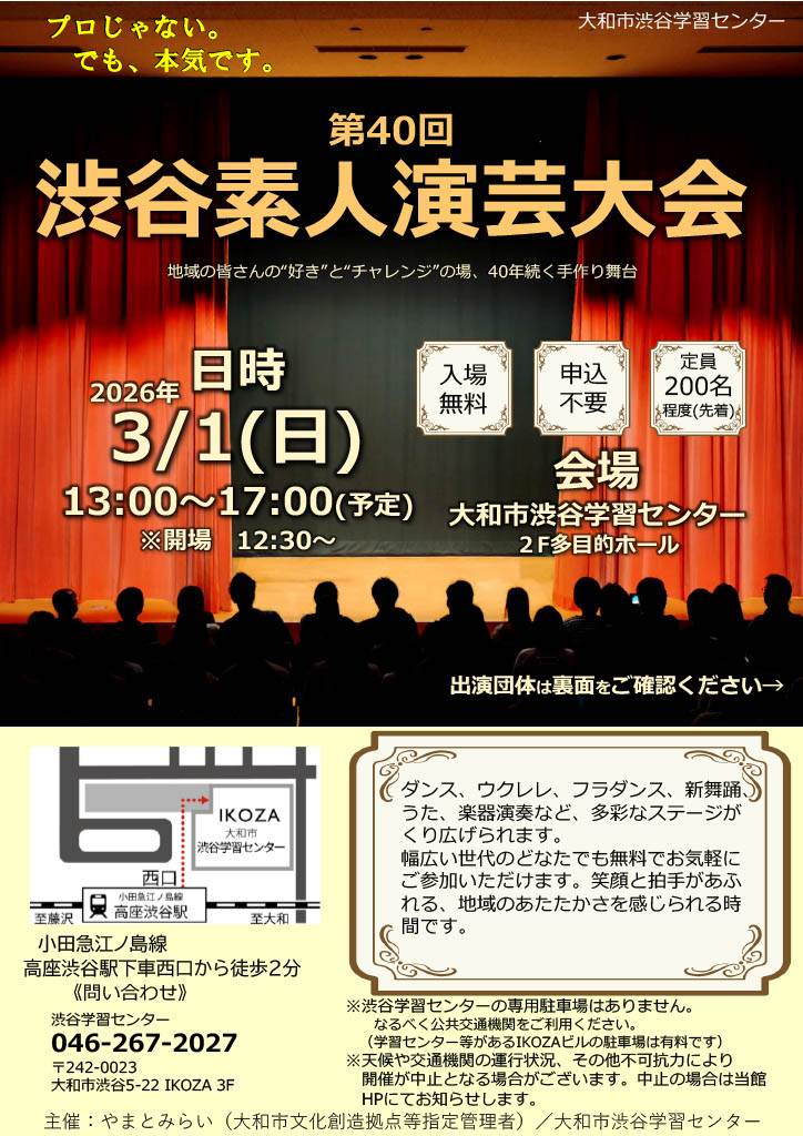 YAMATOMIRAI > 渋谷学習センター > イベント情報 > 第40回渋谷素人演芸大会