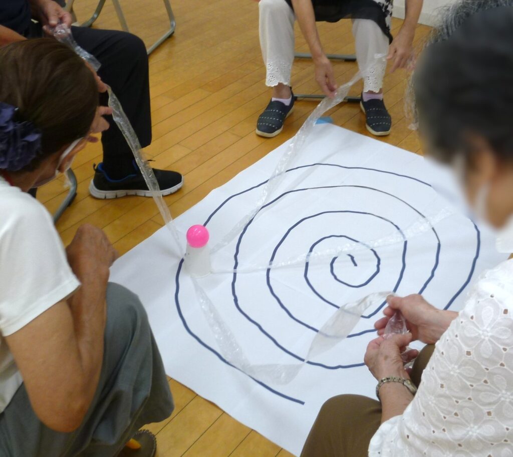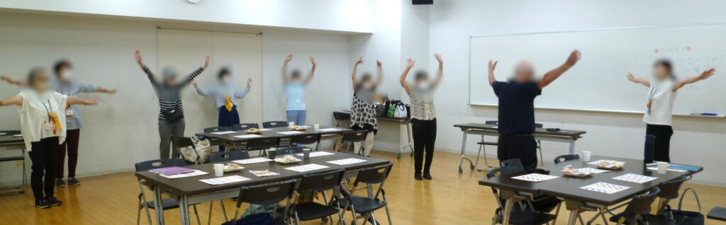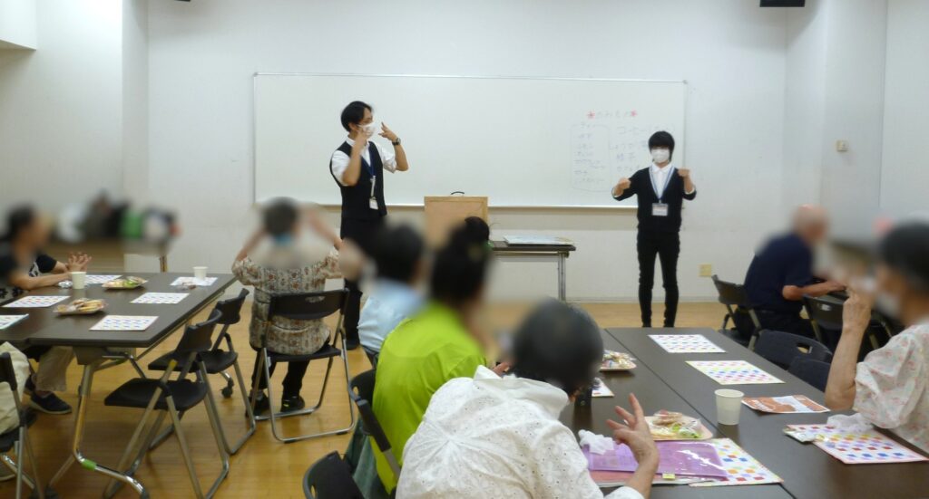 カフェのはじまりにラジオ体操で体をほぐして、そのあとは室内レク。