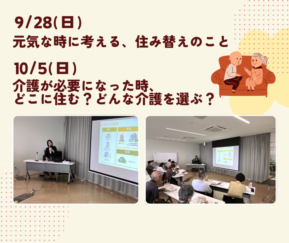 在宅介護と施設介護の違い、相続や自宅売却に向けた準備などを、実際のデータや事例をもとに丁寧にお話しいただきました。介護や住まいに関する現実的な課題を知ることで、参加者の皆さんも「自分や家族にとっての選択」をより具体的にイメージできたようです。