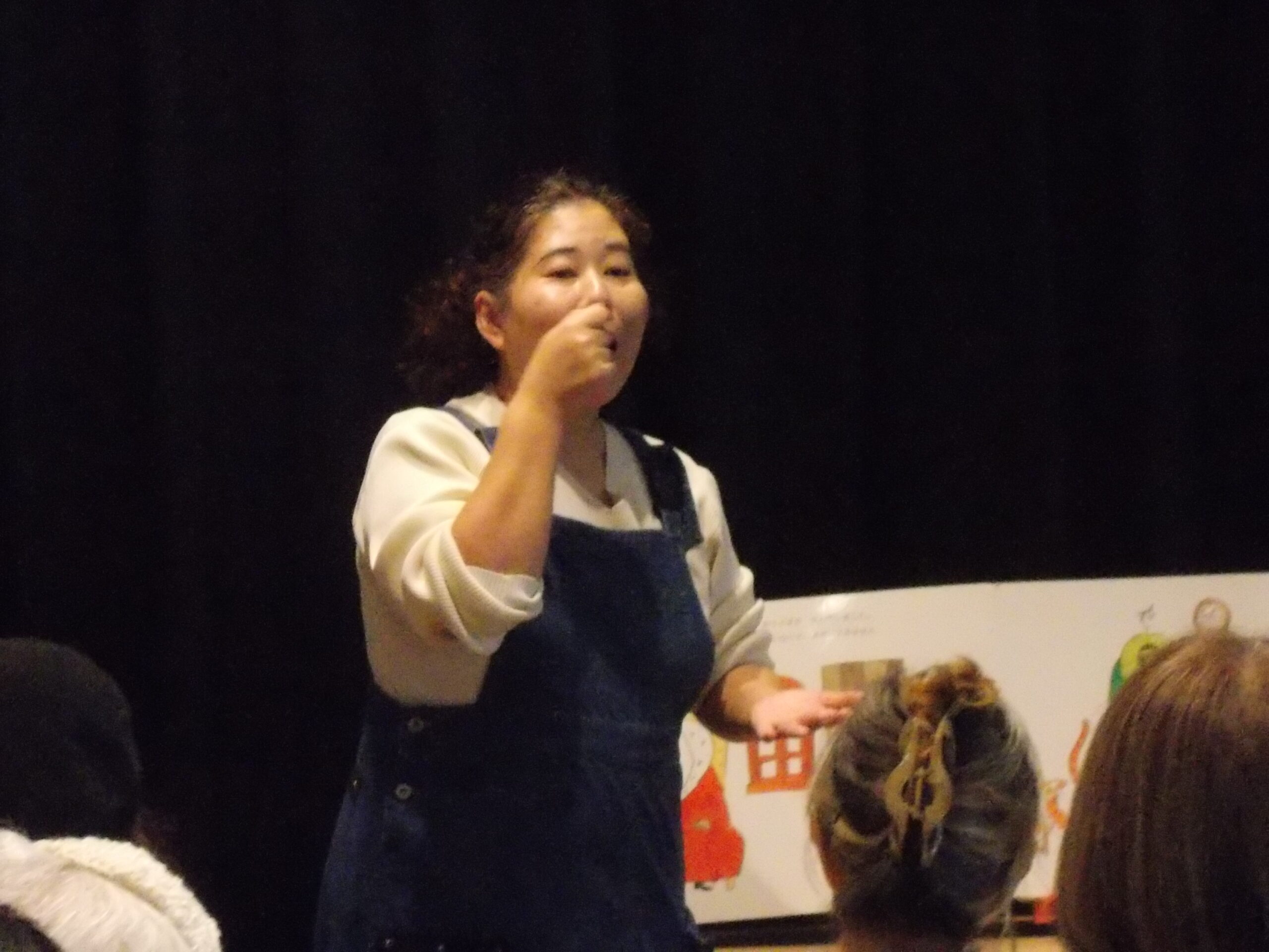 ミニ手話教室と手話での絵本の読み聞かせを行っていただきました。