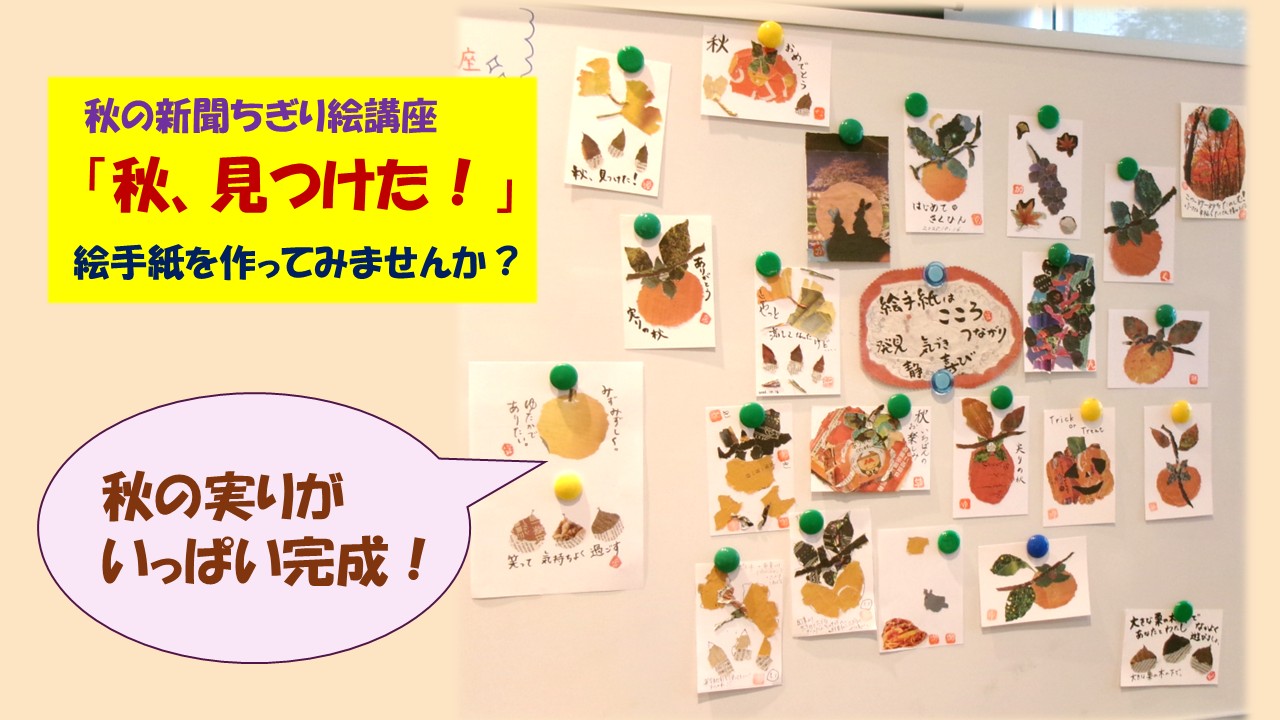 10月16日(木)4階健康テラスにて、秋の新聞ちぎり絵講座「秋、見つけた!」絵手紙を作ってみませんか?を開催しました。