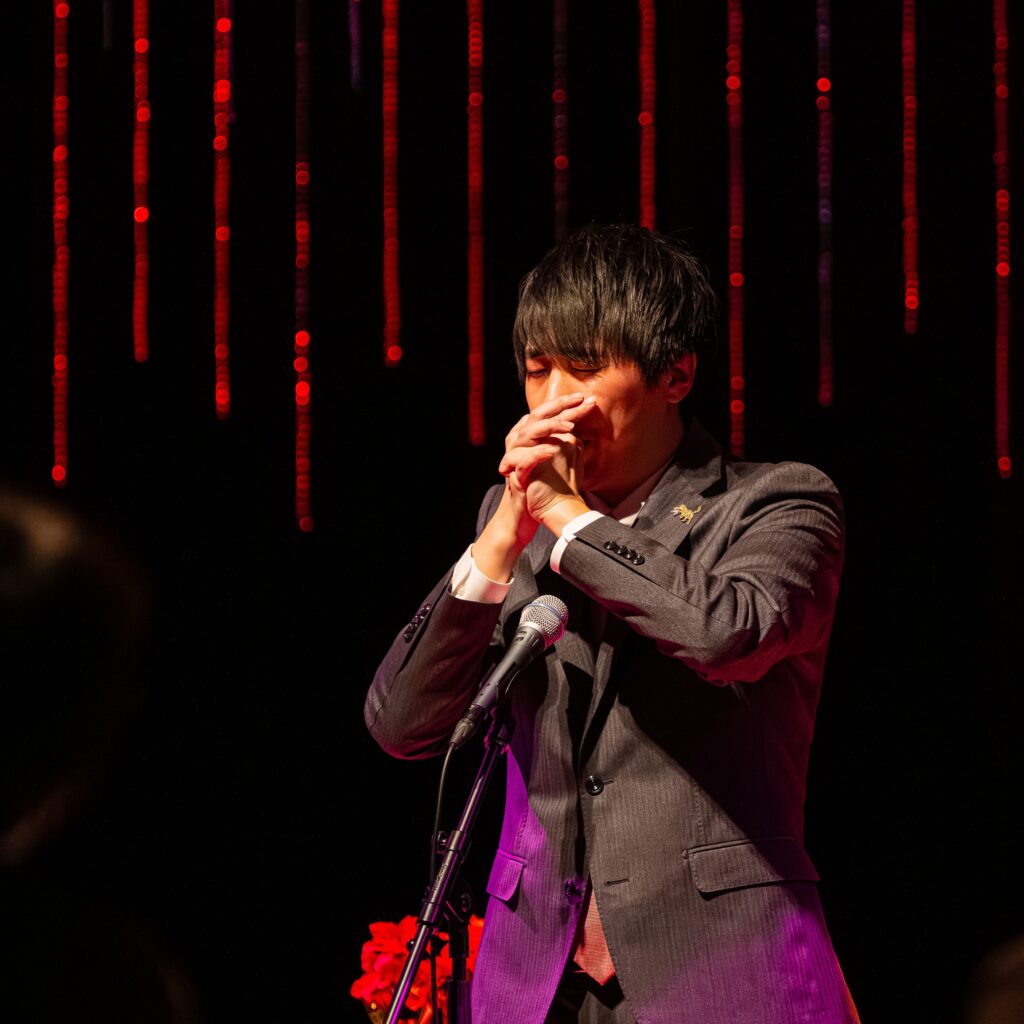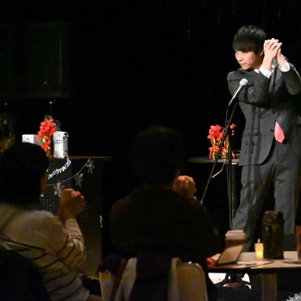 クリスマスの時期にスターバックスコーヒーYAMATO文化森店さんとコラボして開催する、人気の恒例企画。イルミネーションで彩られた会場では、スターバックスコーヒーのスタッフさんのナビゲートで、ハンドフルート奏者・高山大知さんが繊細かつ力強い演奏を披露しました。