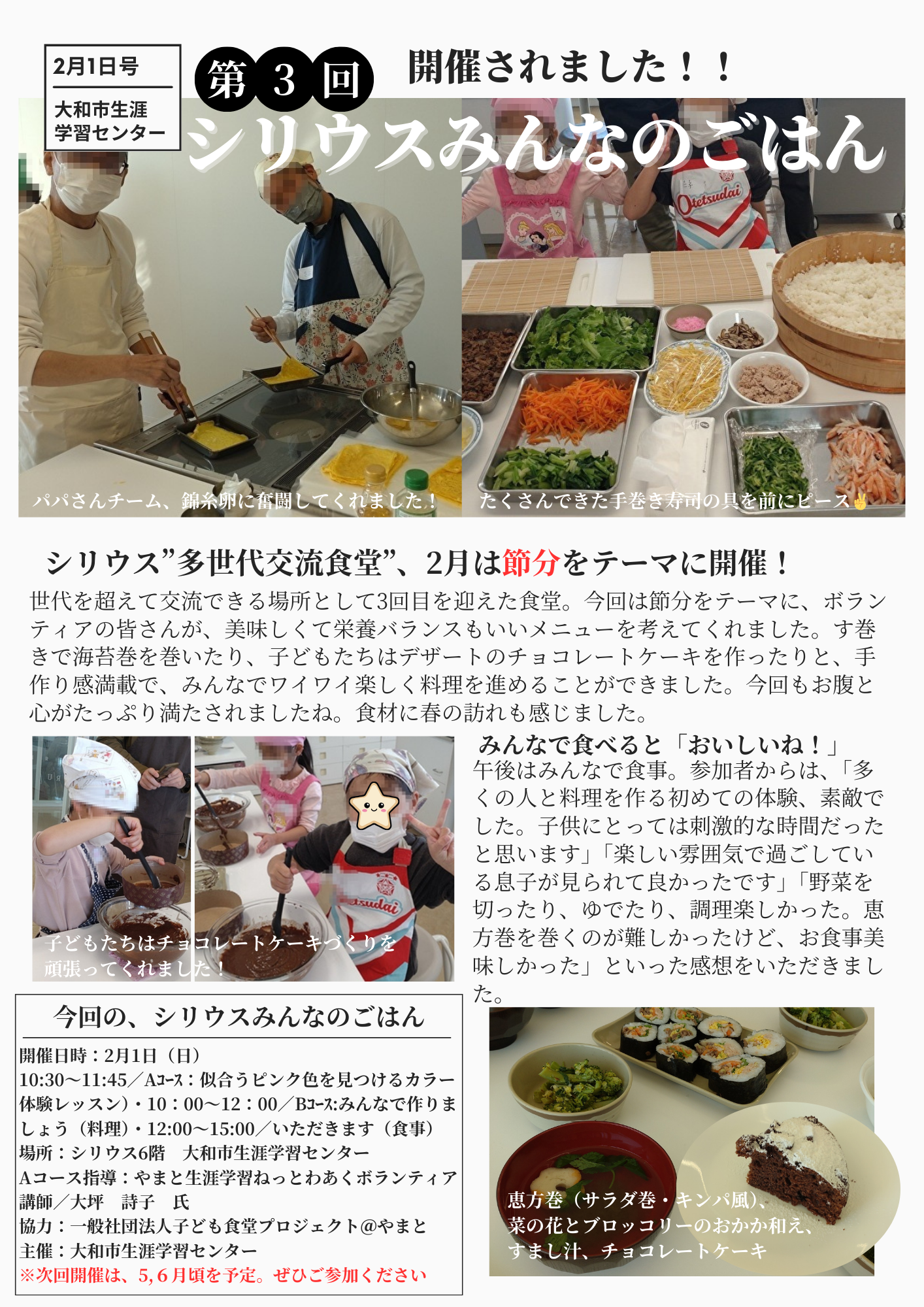 世代を超えて交流できる場所として第3回目を迎える食堂。壁新聞を作りましたので、ぜひご覧ください。