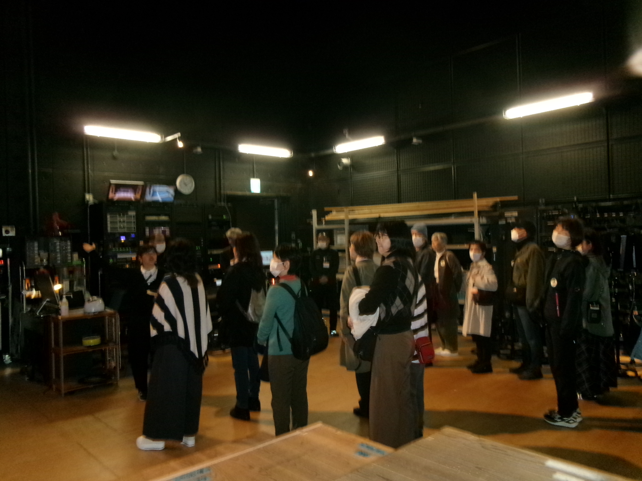 【舞台裏で説明を聞く】