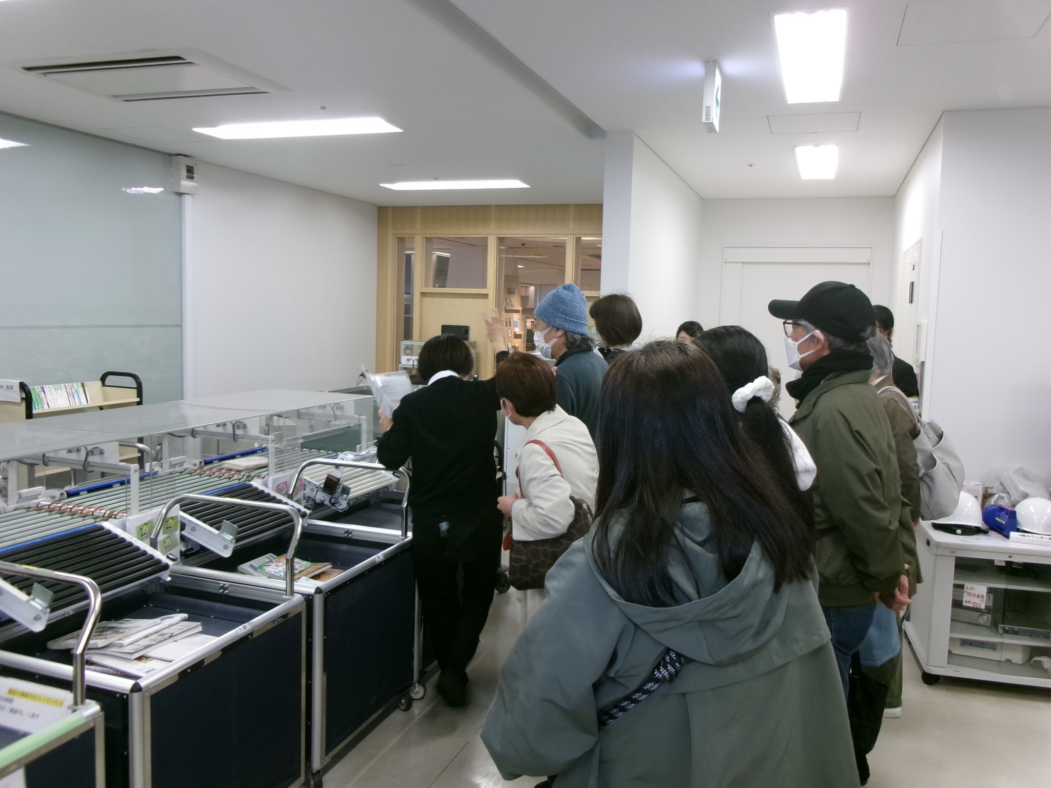 図書館ではベルトコンベヤーを流れる返却本を間近でチェック。気になっていた行き先がわかりましたね。
