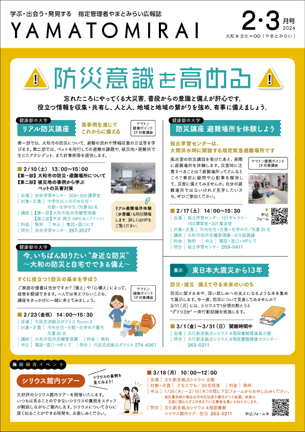 大和市内7施設の広報誌「YAMATOMIRAI(やまとみらい)」2・3月号を発行しました。